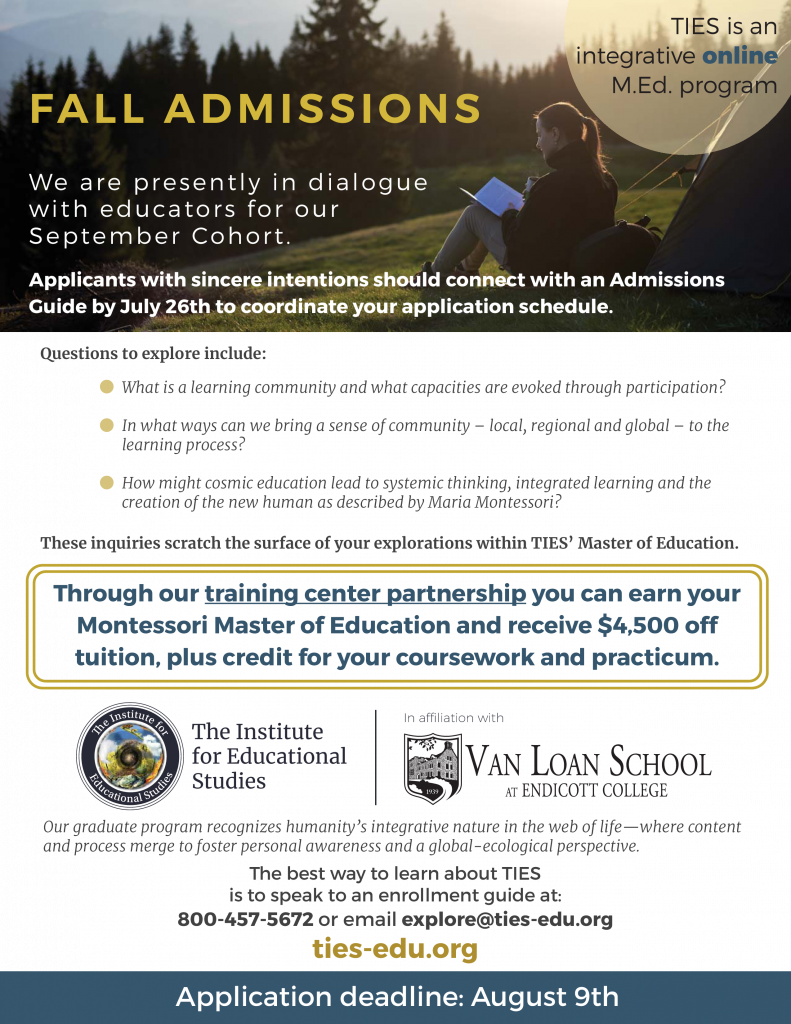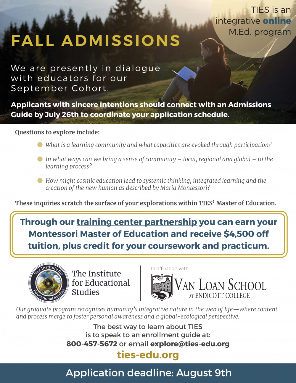 M.Ed. Program now enrolling August 6, 2019 by Rachel Kincaid The Institute for Educational Studies, in affiliation with Van Loan School at Endicott College, is now accepting applications for Fall 2019 cohorts.