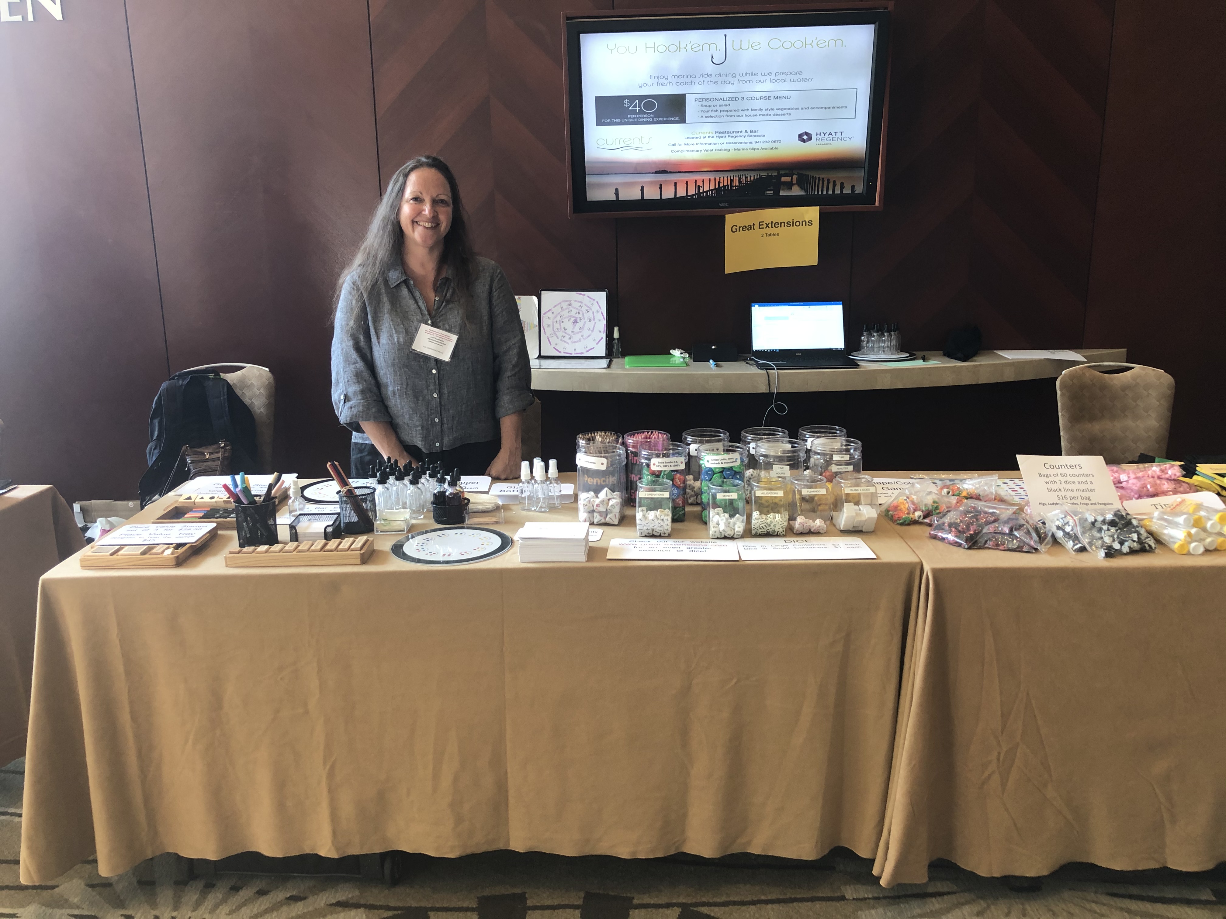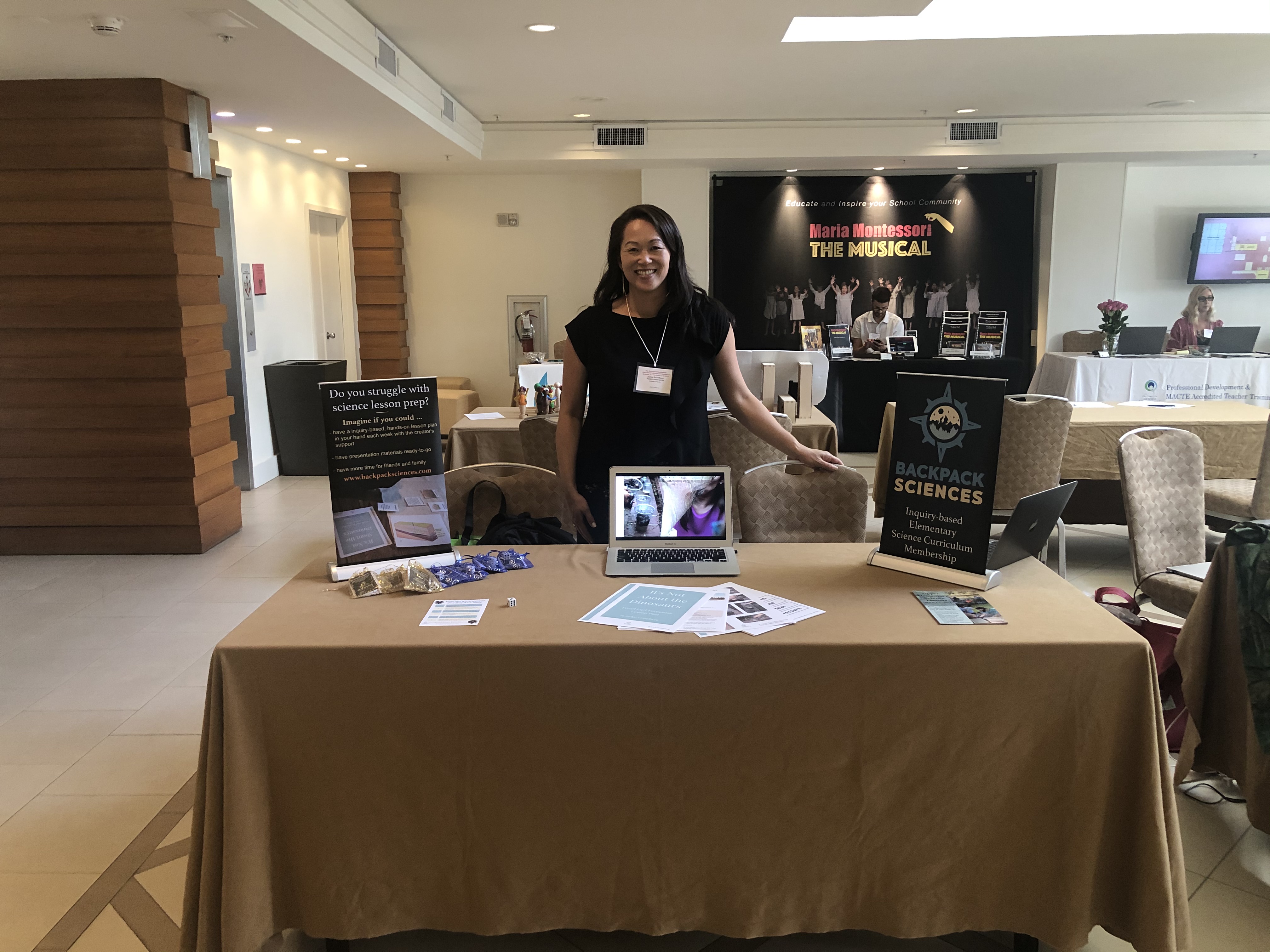 Instructional Guide, Field Consultant and Practicum Advisor Jacqueline Grundberg at her exhibitor table, Backpack Sciences