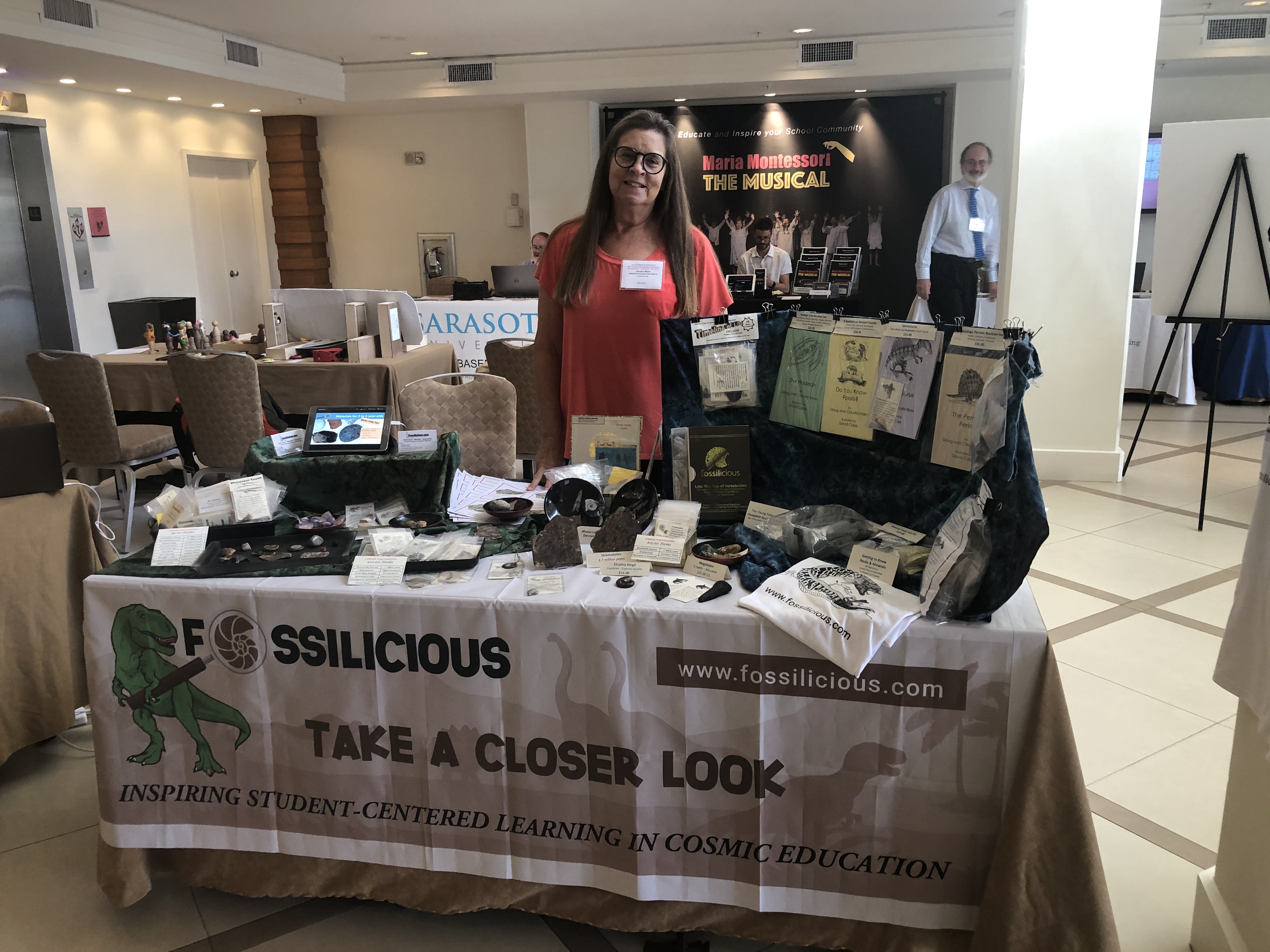 Claudia Mann, CGMS Secondary Instructor, Field Consultant, and Practicum Advisor at her exhibitor table for Fossilicious