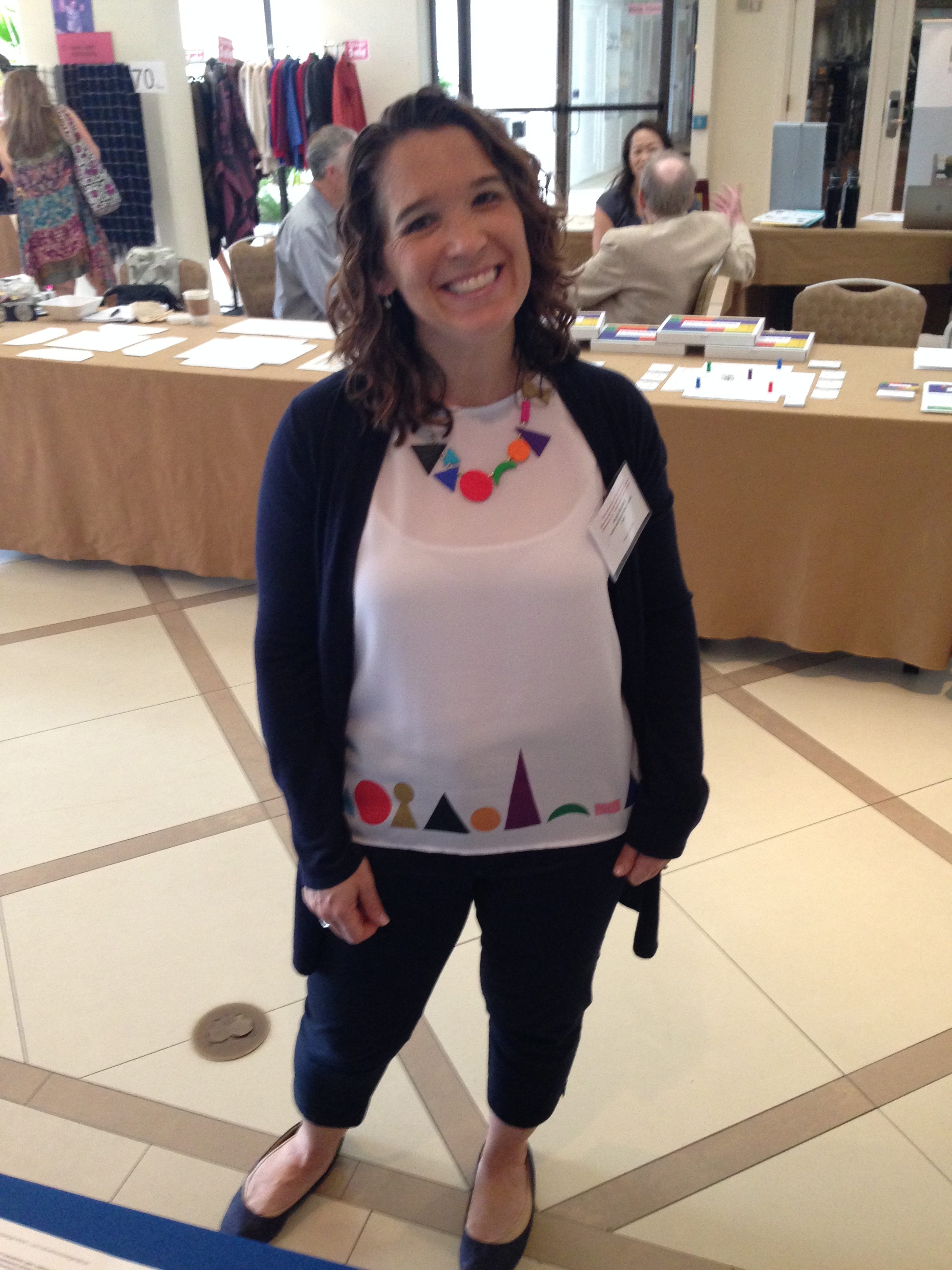 Anya Bartlett, CGMS Instructor, Field Consultant, and Practicum Advisor, decked out in her Grammar Symbol blouse and jewelry.
