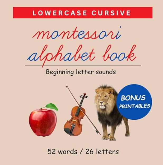 Lowercase Cursive Montessori Alphabet Book by Gaudeliy Creations, published January, 2026.